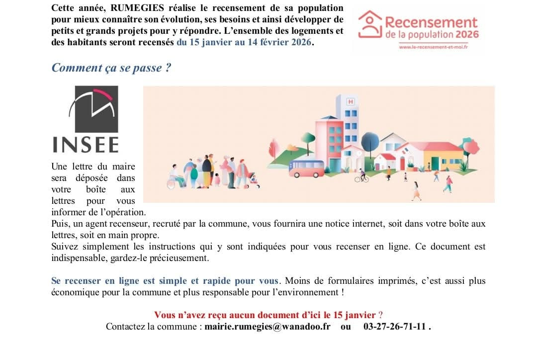 2026 est l’année du recensement des habitants de Rumegies, comme pour de nombreuses autres communes.