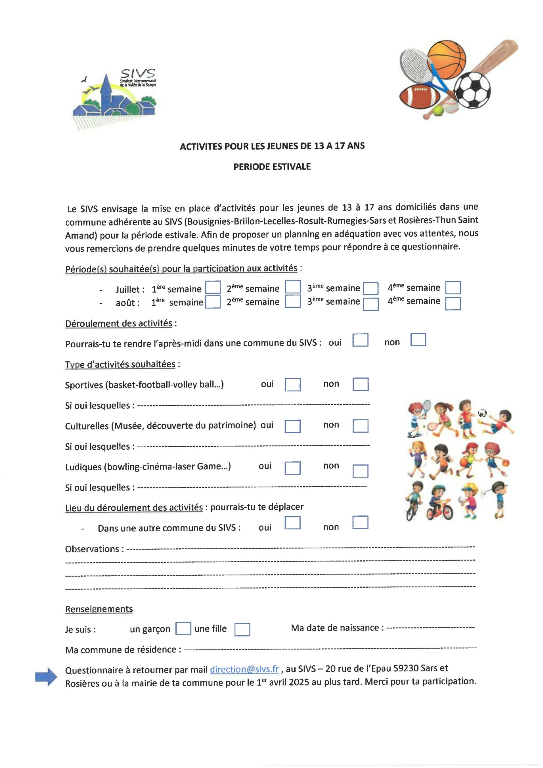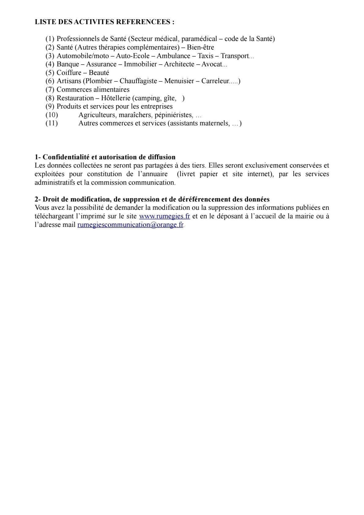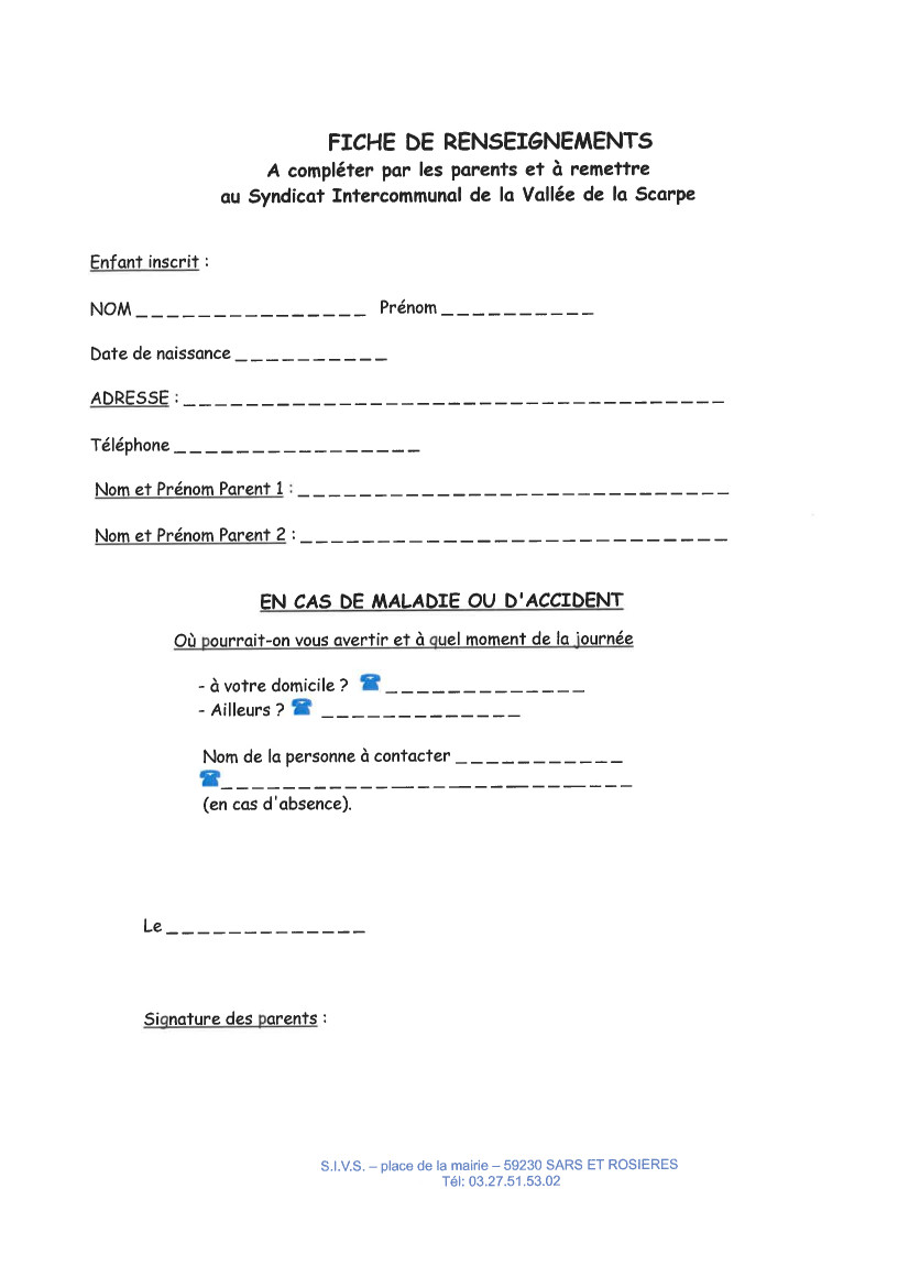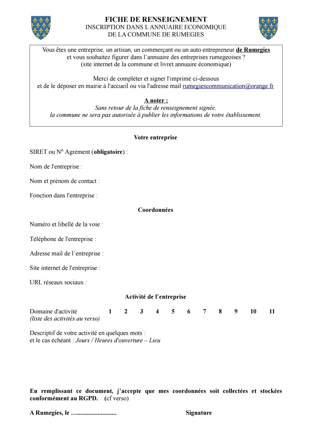 Transmettez la fiche de renseignements complétée à : mairie.rumegies@wanadoo.fr