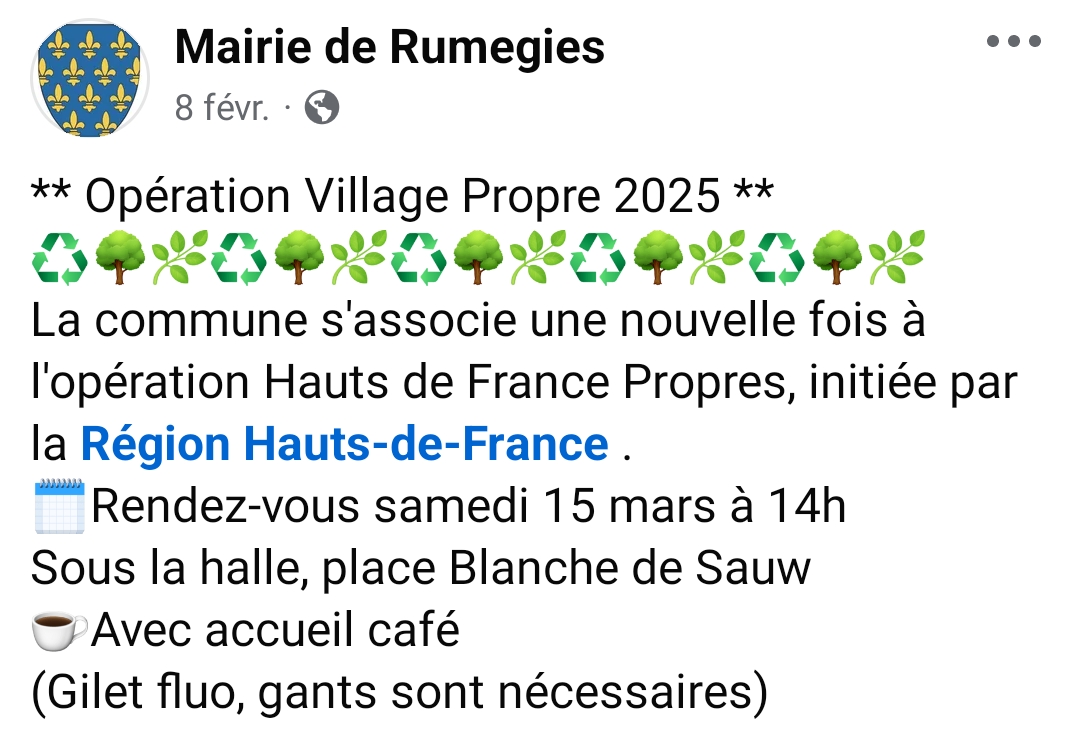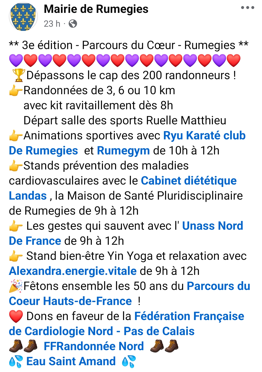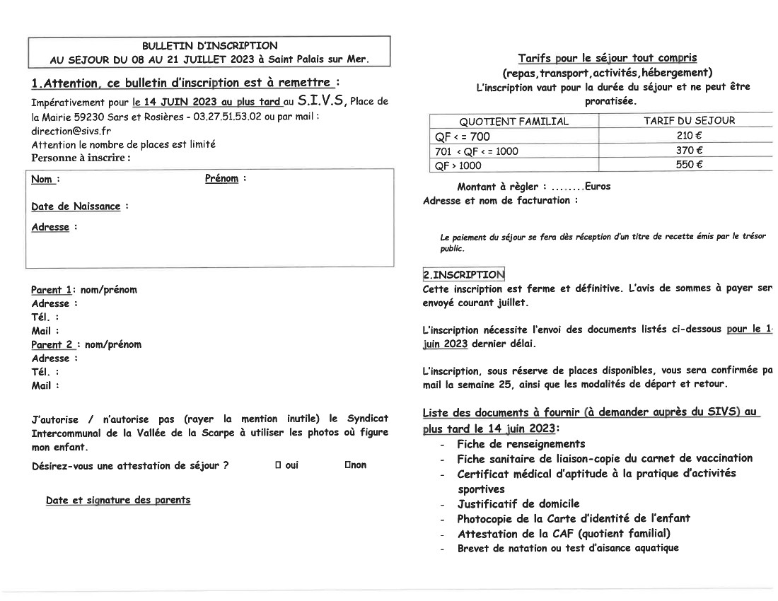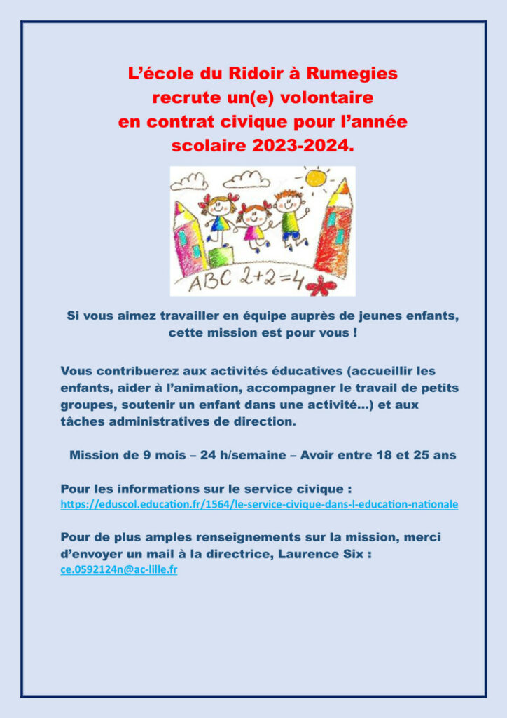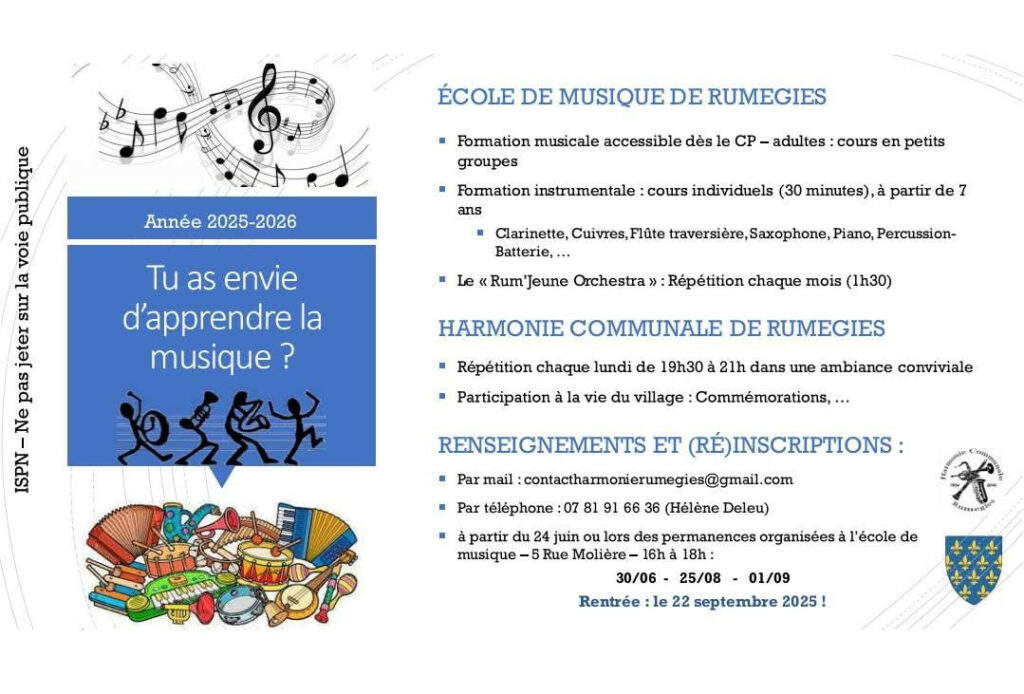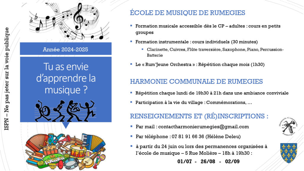 Transmettez la fiche de renseignements complétée à : mairie.rumegies@wanadoo.fr