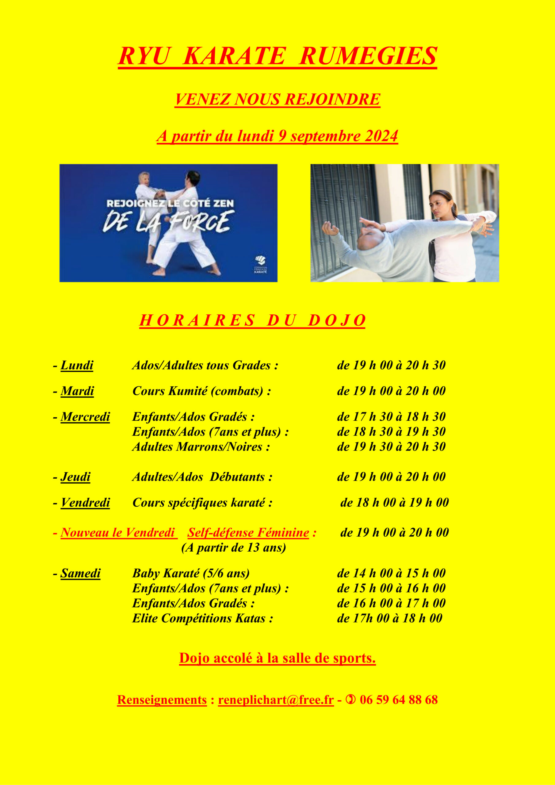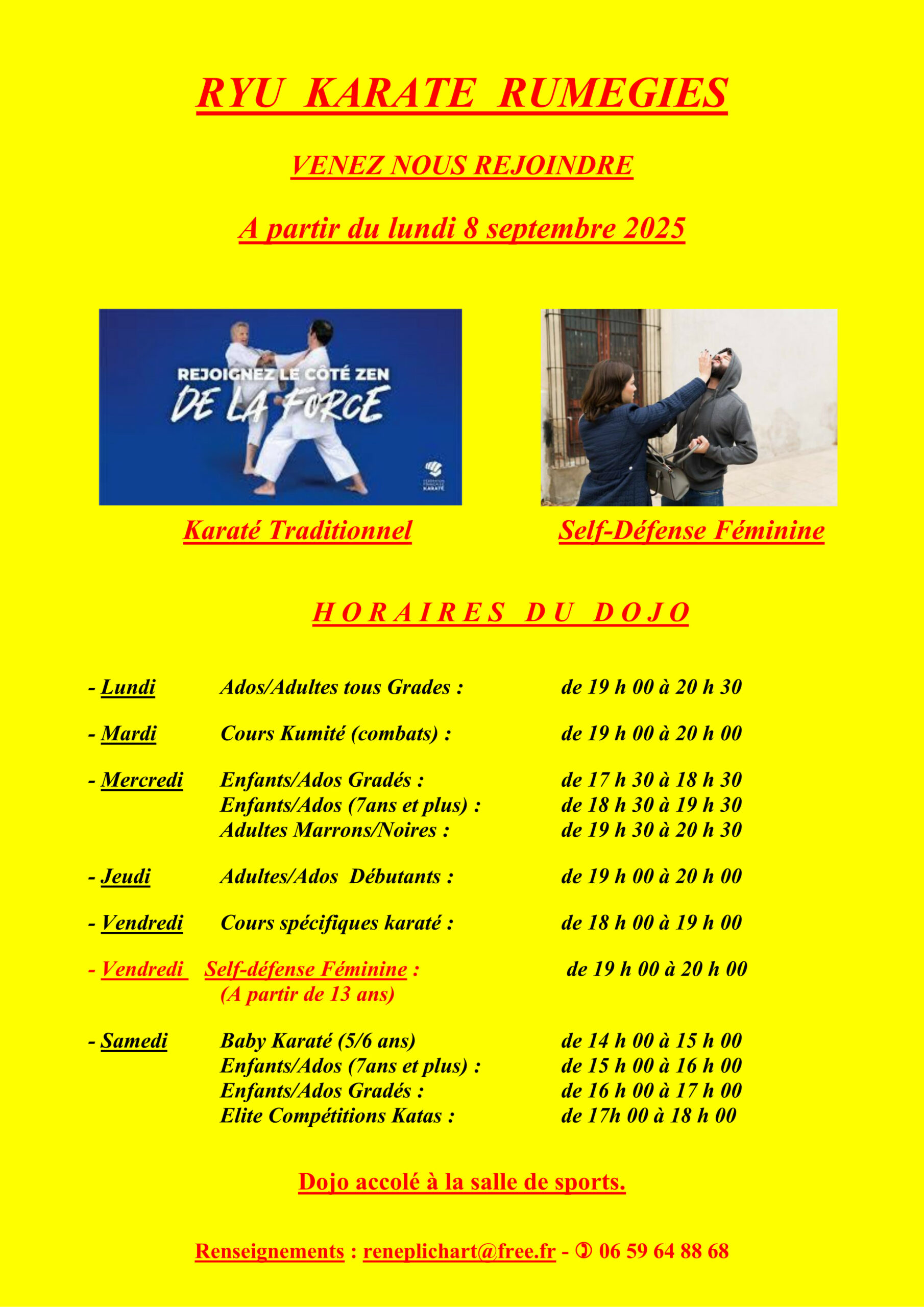 Créneaux : mercredi 3 sept / jeudi 4 sept , de 19h à 20h à la salle des sports.