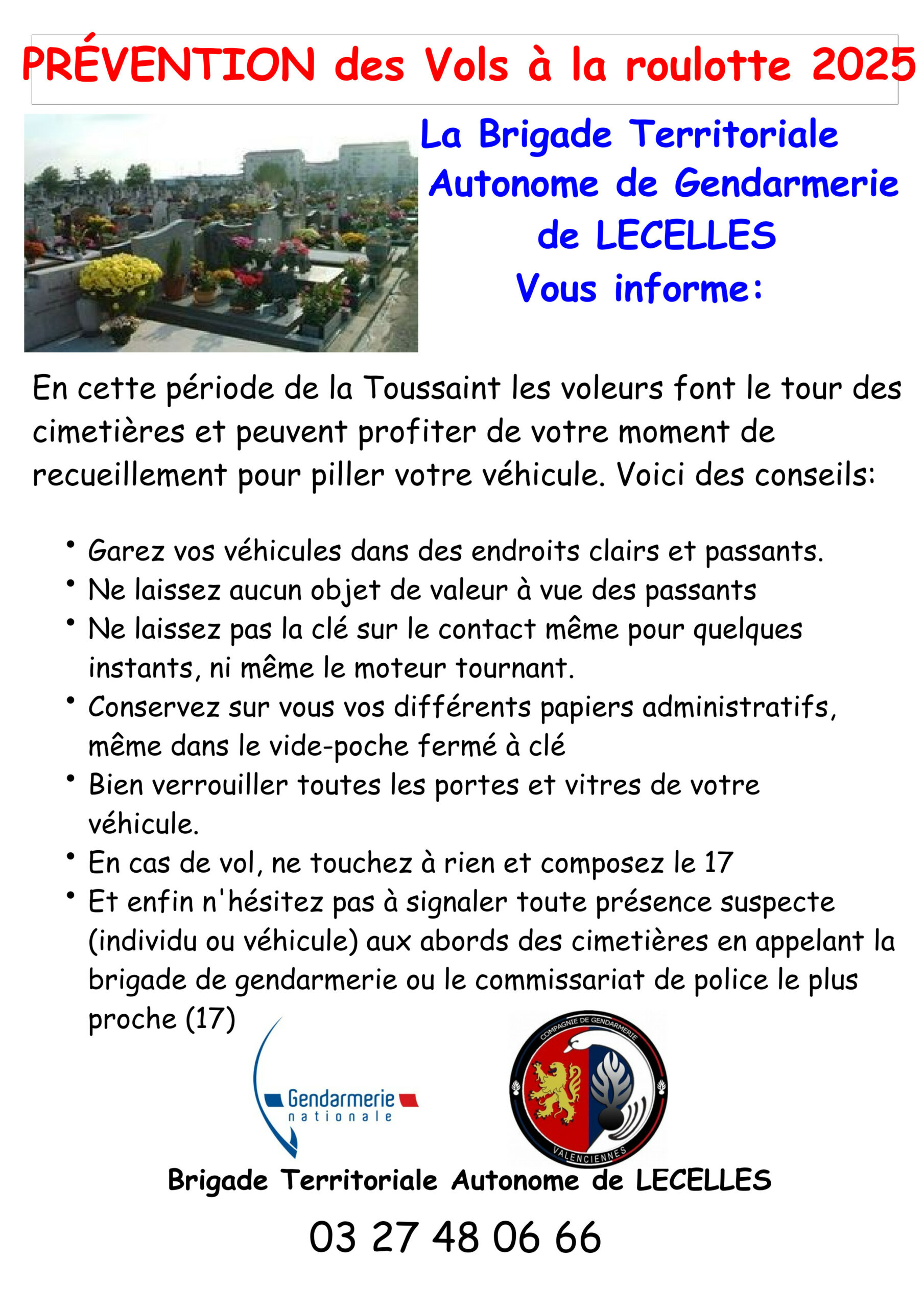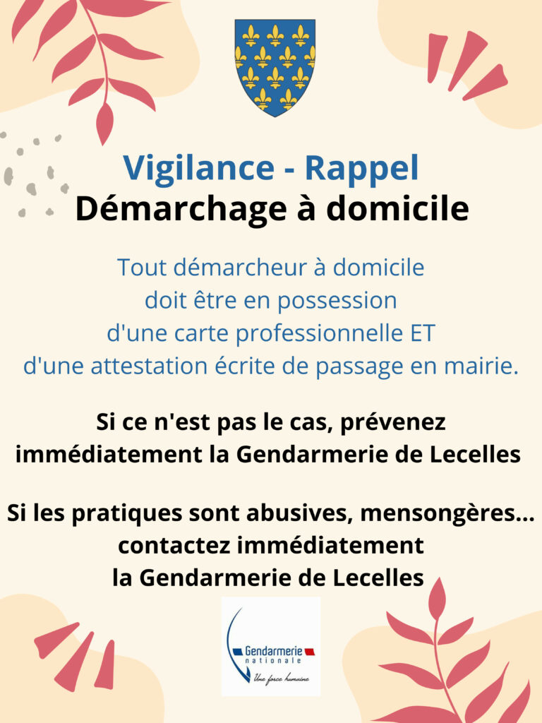 En cas d’absence du cachet de la mairie ou de démarchage abusif, prévenez la gendarmerie de Lecelles au 03 27 48 06 66.