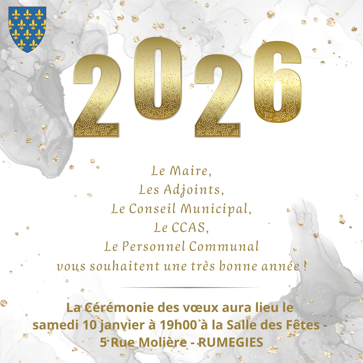 Le conseil municipal, les adjoints, le Centre Communal d’Action Sociale, le personnel communal et moi-même vous souhaitons une très bonne année 2026 ! Qu’elle vous apporte santé, bonheur et réussite pour vous et vos proches.