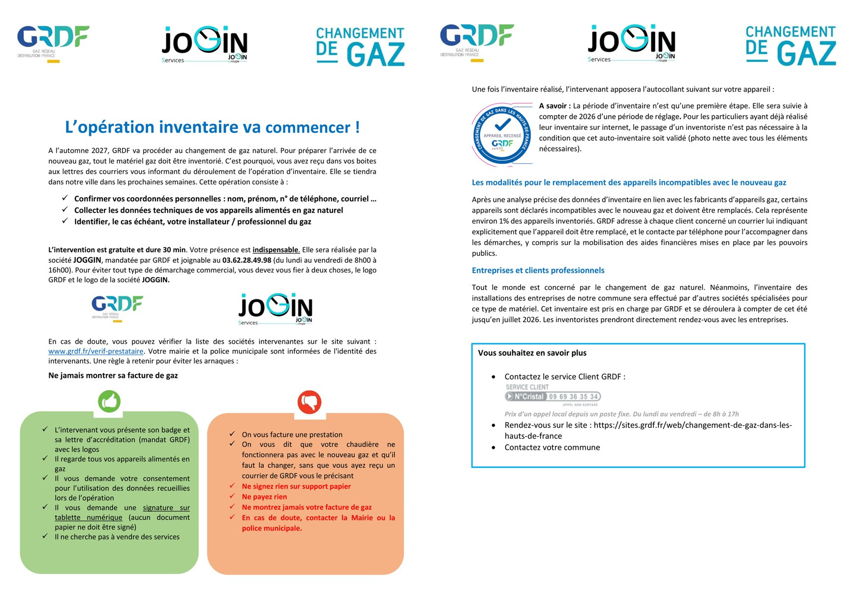 ** GRDF – Opération Changement de Gaz sur la commune de RUMEGIES : nouvelle phase d’inventaire des appareils gaz, à domicile **